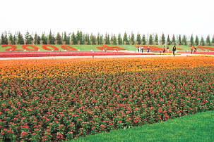 世界園芸博覧会ゲート前広大なお花畑